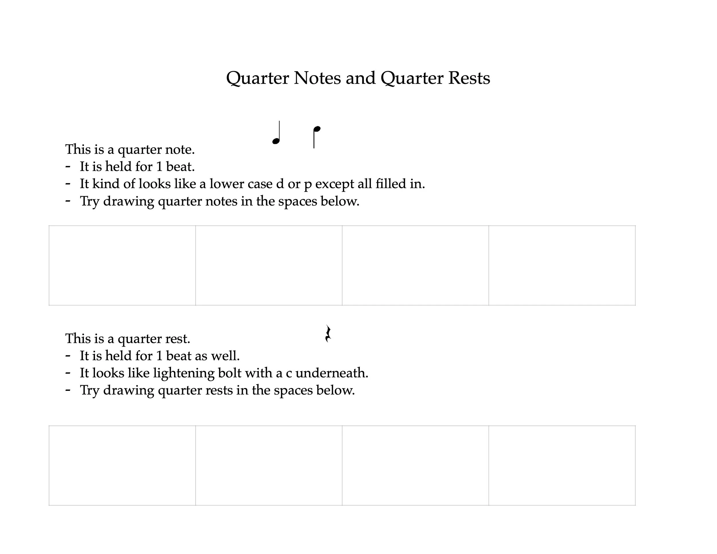 Quarter Notes and Quarter Rests Worksheet